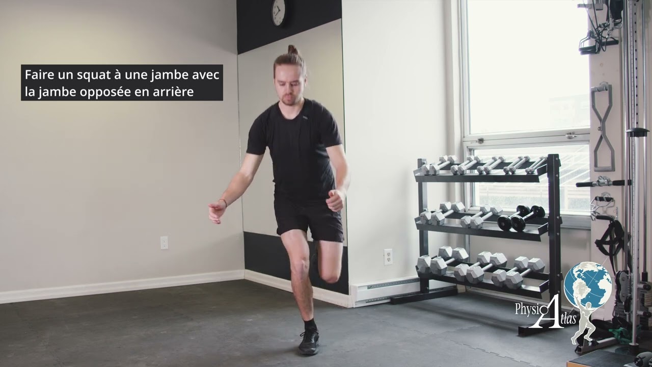 exercice genou/jambe et hanche : renforcement / pistol squat avec chaise